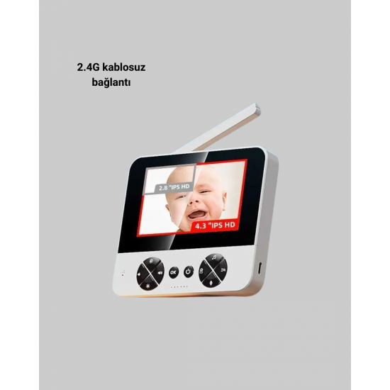 Görüntülü bebek monitörü, yüksek çözünürlüklü kamera ve geniş ekranı ile ebeveynlere güvenli bir izleme deneyimi sunar. 720P görüntü kalitesi sayesinde bebeğinizin yüz ifadelerini ve hareketlerini net bir şekilde görebilirsiniz. Geniş ekran tasarımı, uzun süreli kullanımlarda göz yormayan bir deneyim sağlar.Gece görüş özelliği, karanlık ortamlarda bile kesintisiz izleme imkânı sunar. Ağlama algılama fonksiyonu, bebeğinizin ihtiyaçlarına hızlı şekilde yanıt vermenize yardımcı olur. Uzaktan kamera kontrolü ile odanın farklı noktalarını rahatlıkla görüntüleyebilirsiniz.İki yönlü sesli iletişim sayesinde bebeğinizle konuşabilir, kendinizi yanında hissetmesini sağlayabilirsiniz. Ninni özelliği, bebeğin daha huzurlu uyumasına destek olur. Sıcaklık sensörü, ortam koşullarını takip ederek bebeğiniz için konforlu bir alan oluşturmanıza yardımcı olur.4x zoom, alarm ve saat fonksiyonları günlük ebeveyn rutinlerini kolaylaştırır. Kablosuz bağlantı yapısı sayesinde evin farklı odalarından rahatlıkla izleme yapılabilir.Bu bebek kamerası, güvenlik, konfor ve pratikliği bir arada arayan ebeveynler için ideal bir üründür.