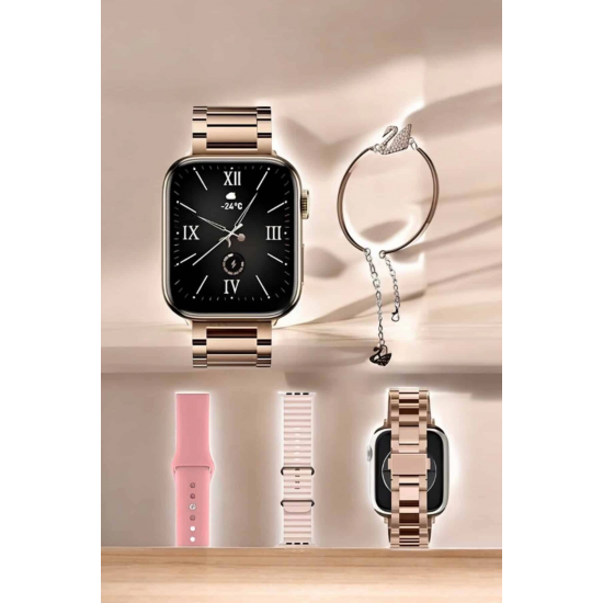 Uzun Pil Ömrü (2000-3000 mAh): Yüksek kapasiteli bataryası sayesinde gün boyunca şarj endişesi olmadan tüm özellikleri kullanabilirsiniz. Rose Gold Kasa Şıklığı: Modern ve zarif rose gold tasarımıyla günlük ve özel kombinlerinizi tamamlar. Adımsayar ve Kalori Takibi: Günlük aktivitelerinizi izleyin, yakılan kaloriyi hesaplayarak fitness hedeflerinize ulaşın. Uyku İzleme Fonksiyonu: Uyku düzeninizi analiz ederek daha kaliteli bir uyku deneyimi için önerilerde bulunur. Nabız ve Sağlık Sensörleri: Kalp atış hızınızı anlık olarak takip ederek sağlığınızı izler ve kayıt altına alır. Hassas GPS Teknolojisi: Konumunuzu doğru bir şekilde belirler ve açık hava sporlarında yön bulmanızı kolaylaştırır. Bluetooth Arama Özelliği: Akıllı saatiniz üzerinden gelen aramaları cevaplayabilir, eller serbest bir iletişim deneyimi yaşayabilirsiniz. Titreşim Bildirimleri: Gelen çağrı, mesaj ve uygulama uyarılarını sessiz ve etkili bir şekilde alın.Sağlık takibi, spor izleme ve günlük kullanım için ideal olan bu akıllı saat, zarif tasarımıyla teknoloji ve estetiği bir araya getiriyor.