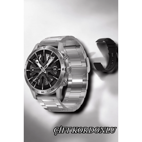 Spor ve Sağlık Tutkunlarına Özel Gelişmiş Akıllı Saat!Bu akıllı saat, hayatınıza hem teknolojiyi hem de konforu bir arada getiriyor:• Arama ve Bildirim Özellikleri: Bluetooth 5.0 bağlantısı ile çağrı cevaplama, arama yapma ve mesaj bildirimlerinizi kolayca yönetebilirsiniz.• Sağlık ve Uyku Takibi: Nabız ölçer, kan basıncı izleme, EKG, uyku düzeni takibi ve vücut sıcaklığı ölçümü gibi gelişmiş özelliklerle sağlığınızı kontrol edin.• Spor Modları & Kalori Takibi: Çeşitli spor modlarıyla antrenman performansınızı artırın ve yakılan kaloriyi takip edin.• Kablosuz Şarj & NFC Özelliği: Temassız ödeme kolaylığı ve kablosuz şarj teknolojisiyle günümüzün ihtiyaçlarını karşılıyor.• Dayanıklılık: Suya dayanıklı yapısı, spor ve açık hava aktiviteleriniz için idealdir.• Sesli Asistan: Sadece sesli komutlarla işlemlerinizi hızla gerçekleştirin.• Şık ve Kullanışlı: Dokunmatik ekranı ve çift kordon seçeneğiyle hem tarzınıza hem de ihtiyaçlarınıza uyum sağlar.iOS ve Android cihazlarla uyumlu bu saat, teknoloji ve şıklığı bir arada sunuyor!