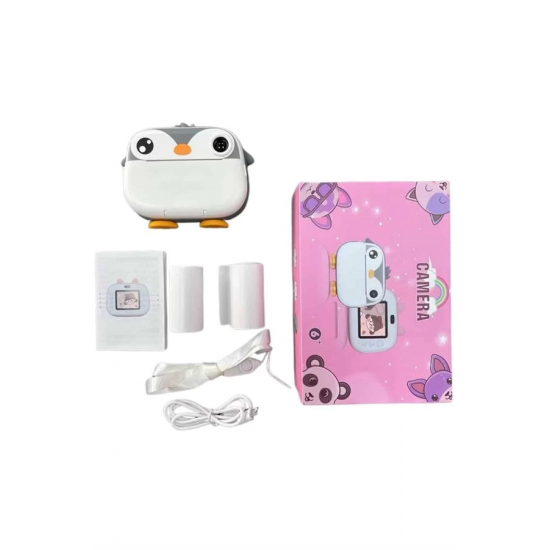 Mey İthalat® Çocuklara Özel Şirin Tasarımlı Mini Fotoğraf Yazıcısı 3 Adet Rulo Hediyeli