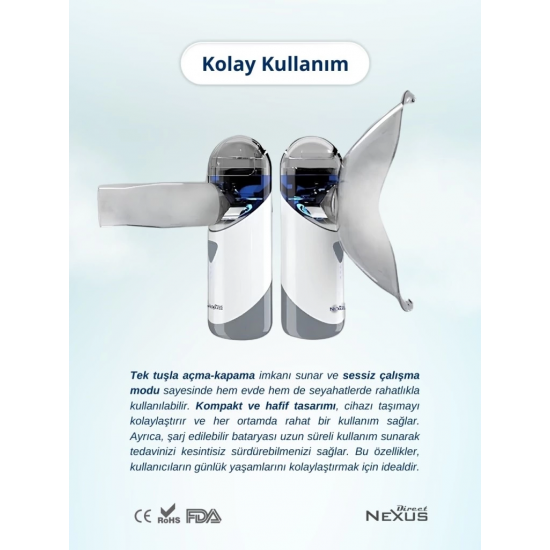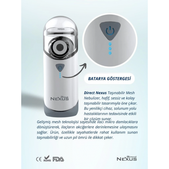 Mey İthalat® Direct Nexus Taşınabilir Mesh Hava Makinesi Nebulizatör