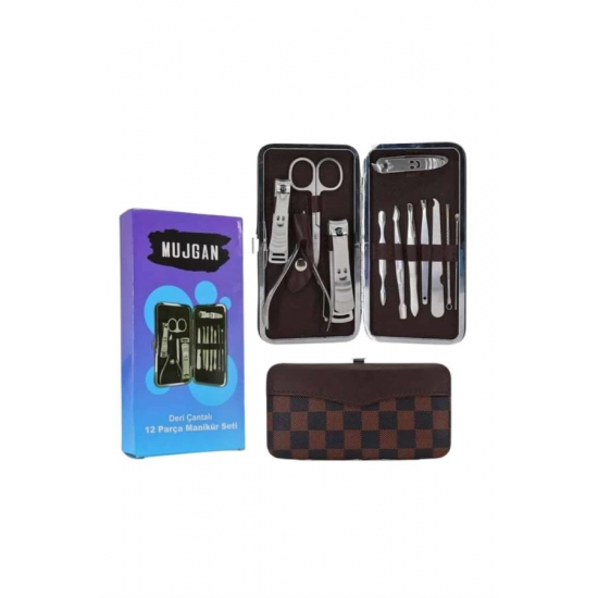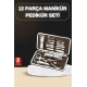 Mey İthalat® 12 Parça Manikür Pedikür Seti Özel Deri Çanta El Ayak Bakımı Akne ve Sivilce Temizleme