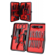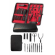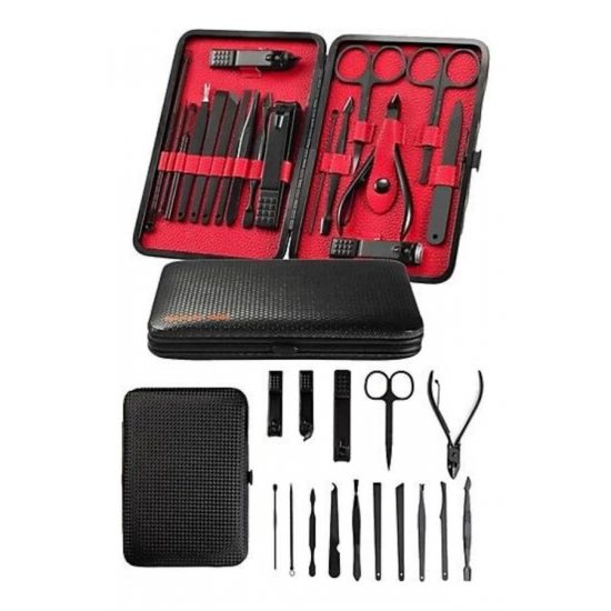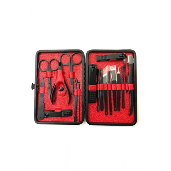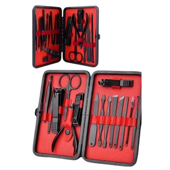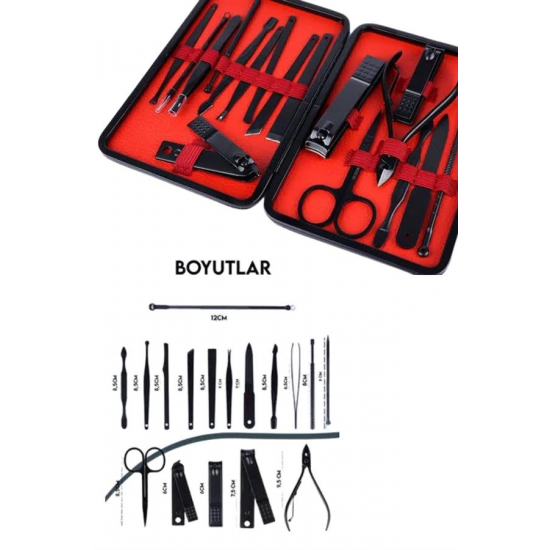 17 Parça Manikür Pedikür Seti Paslanmaz Çelik Deri Çantalı Siyah Tırnak Bakım SetiBu 17 parçalı manikür pedikür seti, el ve ayak bakımınızı en iyi şekilde yapabilmeniz için gerekli tüm araçları içerir. Setin tamamı yüksek kaliteli paslanmaz çelikten üretilmiştir, bu sayede uzun ömürlü, dayanıklı ve hijyeniktir. Setin her bir parçası, bakımınızı kolaylaştırmak ve profesyonel sonuçlar elde etmenize yardımcı olmak için titizlikle seçilmiştir.Yüksek Kaliteli Paslanmaz Çelik ve Keskin Aletler:Setin tüm ürün parçaları %100 paslanmaz çelikten üretilmiştir. Bu, korozyon riski olmadan uzun süre kullanılmasını sağlar. Keskin aletler, tırnak bakımında mükemmel sonuçlar elde etmenize yardımcı olur. Hem el hem de ayak tırnaklarınıza güvenle şekil verebilir, temiz ve düzgün kesimler yapabilirsiniz.Şık ve Fonksiyonel Deri Çanta:Set, taşınabilirliği artıran zarif bir deri çanta içinde sunulur. Fermuarla kolayca açılıp kapanabilen bu çanta, tüm aletlerinizi düzenli tutarak, taşımayı kolaylaştırır. Çantanızda rahatça taşıyabileceğiniz bu set, seyahatte veya evde kullanım için mükemmeldir.Kapsamlı ve Fonksiyonel Set İçeriği:Bu set, tırnak bakımınızı mükemmel bir şekilde yapabilmeniz için ihtiyacınız olan tüm aletleri içerir. İçeriğinde büyük ve küçük tırnak makasları, sivri uçlu tırnak makası, törpü, et ittirici, pedikür bıçakları ve daha birçok kullanışlı araç bulunur. Ayrıca, her parça hijyenik kullanım için kolayca temizlenebilir.Sağlıklı ve Güvenli Kullanım:Paslanmaz çelik yapısı, korozyona karşı dayanıklı olup, bakım sırasında enfeksiyon riskini en aza indirir. Her bir parça, sağlıklı ve güvenli bir kullanım için tasarlanmıştır, bu da hijyenin her zaman ön planda tutulmasını sağlar.Paket İçeriği:1 adet büyük tırnak makası1 adet küçük tırnak makası1 adet sivri uçlu tırnak makası1 adet çift uçlu komedon1 adet törpü1 adet et ittirici1 adet çift taraflı tırnak kaldırma aleti1 adet makas1 adet pedikür bıçağı1 adet çarpraz pedikür bıçağı1 adet kavisli pedikür bıçağı1 adet V şeklinde et itme1 adet itme çubuğu1 adet tırnak temizleme1 adet cımbız1 adet iğneli komedon1 adet kulak temizlemeÖzellikler:%100 paslanmaz çelik malzemeŞık ve taşıması kolay deri çantaHijyenik ve güvenli kullanımKolay temizlenebilir aletlerSeyahat dostu, taşınabilir yapıEvde veya seyahatte kullanabileceğiniz bu manikür pedikür seti, bakımınızı en iyi şekilde yapabilmeniz için ideal bir seçimdir. Hem kendinize hem de sevdiklerinize hediye edebileceğiniz harika bir bakım setidir.