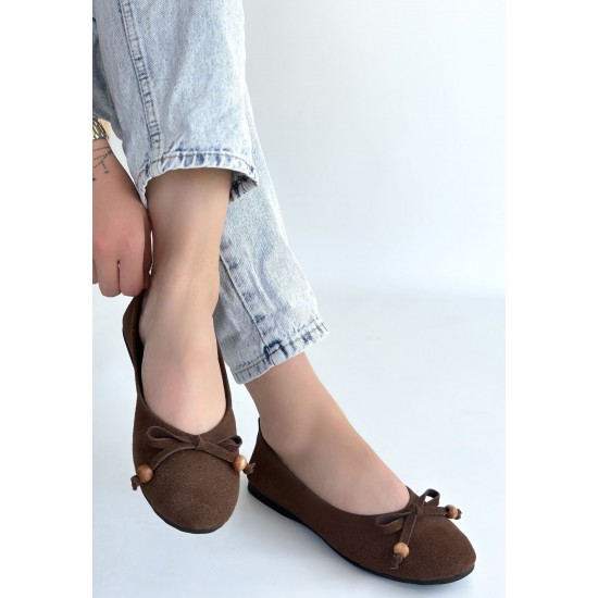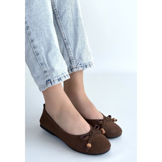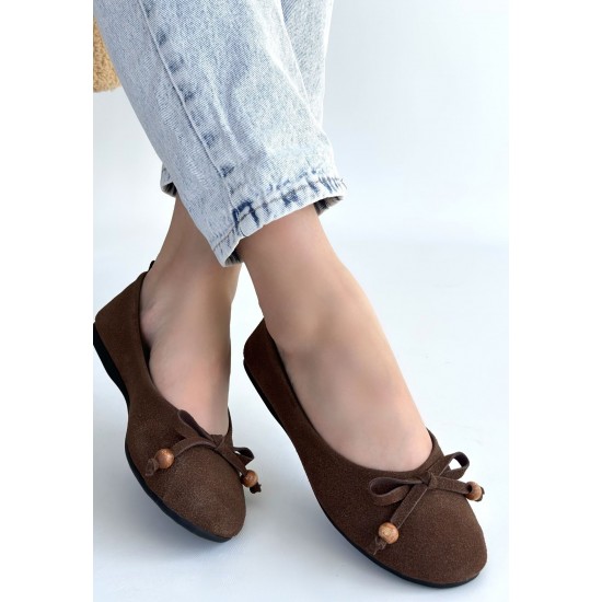 Cear Kahverengi Deri Tozu Süet Babet Ayakkabı