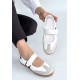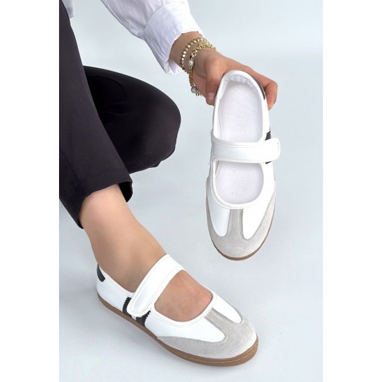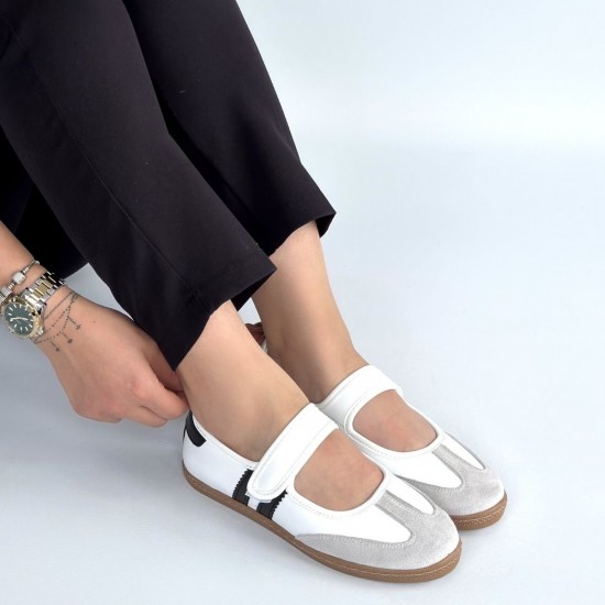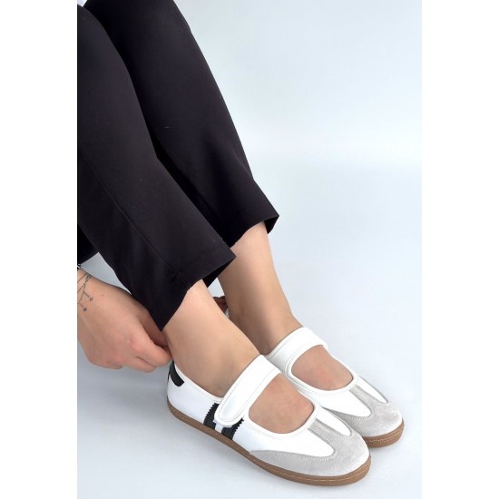 Menja Beyaz Cilt Cırt Cırtlı Babet Ayakkabı