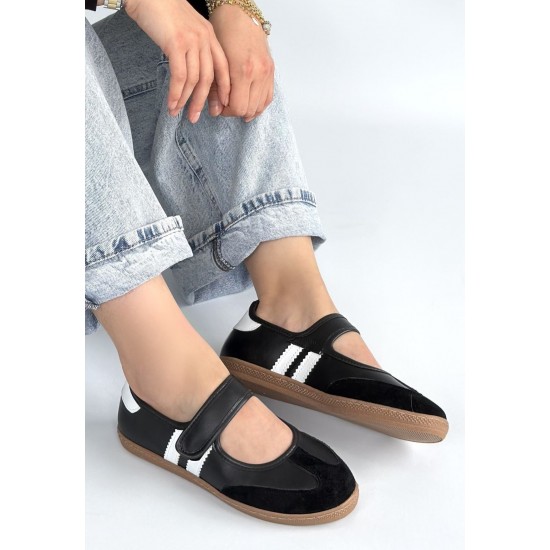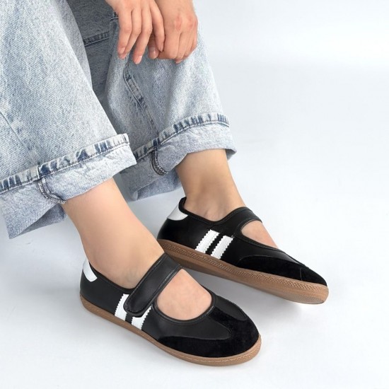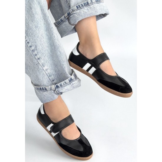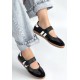 Menja Siyah Cilt Cırt Cırtlı Babet Ayakkabı