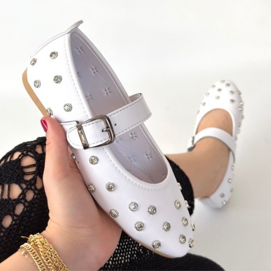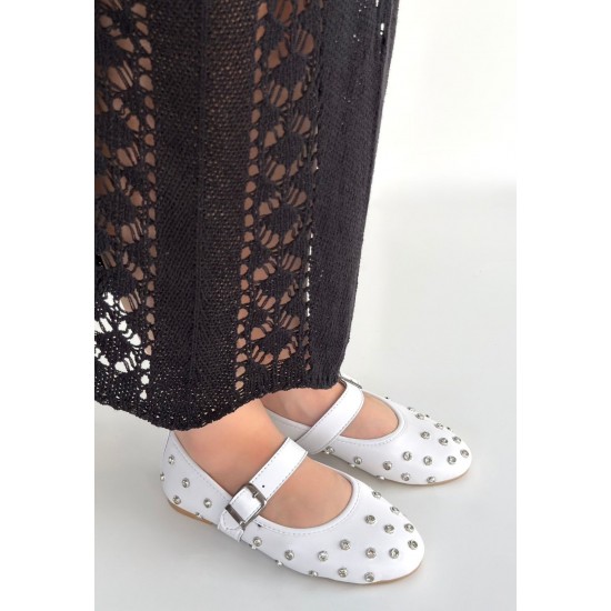 Ritta Beyaz Cilt Kemerli Babet Ayakkabı