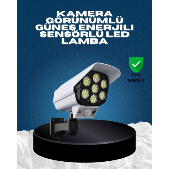 Güvenlik ve aydınlatmayı tek üründe birleştiren güneş enerjili kamera görünümlü LED duvar lambası, dış mekanlar için pratik ve etkili bir çözümdür. Gerçek güvenlik kamerasını andıran tasarımı sayesinde yalnızca aydınlatma sağlamaz, aynı zamanda caydırıcı bir güvenlik etkisi oluşturur. Ev, bahçe, garaj, site girişi, balkon ve dış cephe kullanımı için idealdir.Ürünün üst kısmında yer alan polikristal güneş paneli, gün boyunca güneş ışığını depolar ve gece boyunca lambanın çalışmasını sağlar. Elektrik bağlantısına veya kabloya ihtiyaç duymadan çalıştığı için hem enerji tasarrufu sağlar hem de montaj kolaylığı sunar. Kurulum için profesyonel destek gerekmez.6 adet yüksek parlaklık sunan SMD LED sayesinde geniş alanlarda etkili bir aydınlatma elde edilir. Hareket sensörü 120° geniş algılama açısına sahiptir ve 5–8 metre mesafedeki hareketleri algılayarak otomatik olarak devreye girer. Sensörlü yapısı sayesinde yalnızca ihtiyaç duyulduğunda çalışır ve gereksiz enerji tüketimini önler.Ürün, uzaktan kumanda ile kontrol edilebilen 3 farklı çalışma moduna sahiptir. İsteğe bağlı olarak sadece hareket algılandığında yanma, düşük ışık + hareketle parlak ışık veya sabit orta seviye aydınlatma seçenekleri kullanılabilir. Su geçirmez yapısı sayesinde yağmur, kar ve zorlu hava koşullarına karşı dayanıklıdır. 360° ayarlanabilir başlığı ile ışık yönü istenilen alana kolayca çevrilebilir.
