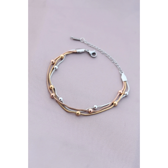 Mey İthalat® 316L Kararmaz Çelik Gümüş Renk Top Zincirli Kadın Bileklik