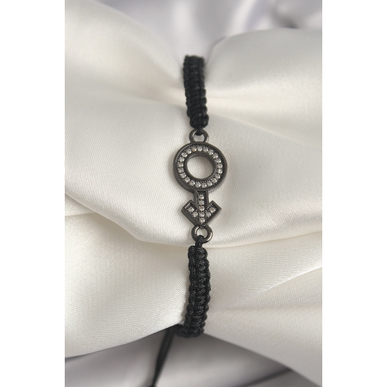 Mey İthalat® Pirinç Füme Renk Zirkon Taşlı Venüs Mars Asansörlü Makrome Model Kadın Bileklik