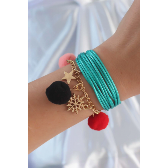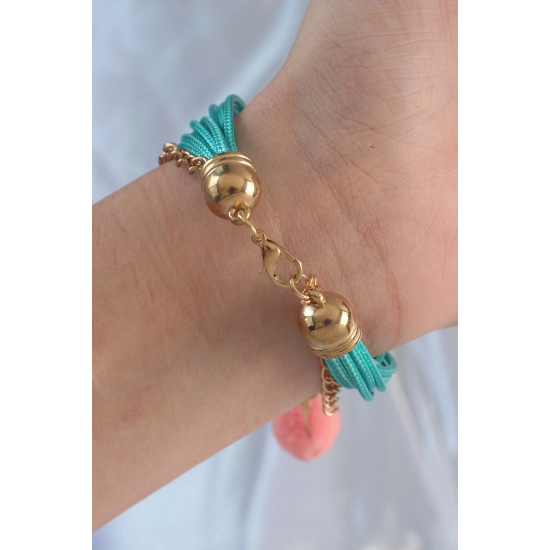 Mey İthalat® Turkuaz Renk Kar Tanesi Figür Zincir Detay İpli Çoklu Bileklik