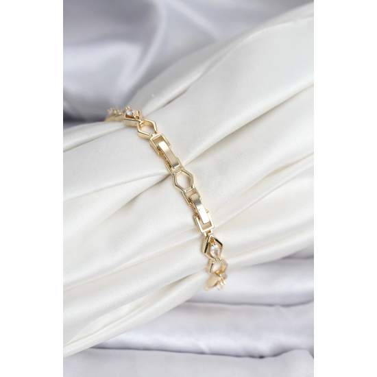 Mey İthalat® 14K Gold Renk Kaplama Baklava Dilim Model Kadın Bileklik