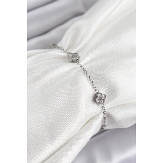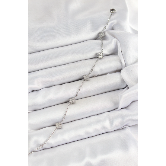 Mey İthalat® 316L Çelik Yonca Model Gümüş Renk Kadın Bileklik