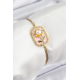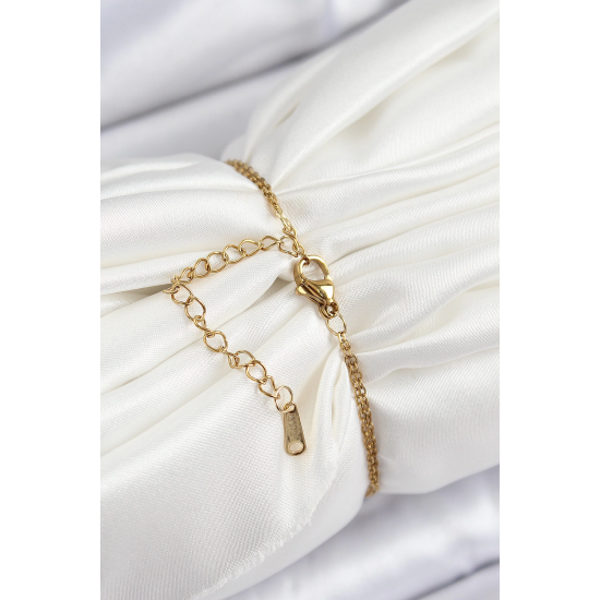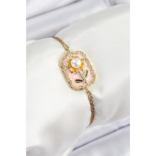 Mey İthalat® 316L Çelik Zincir Pembe Mineli Sanatsal Portre İnci Detaylı Papatya Model Gold Renk Kadın Bileklik