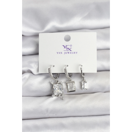 Mey İthalat® Gümüş Renk Zirkon Taşlı Kadın Küpe