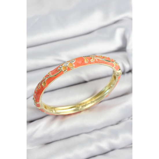 Mey İthalat® Mineli Pirinç Zirkon Taşlı Turuncu Çiçek Motifli Gold Kadın Kelepçe
