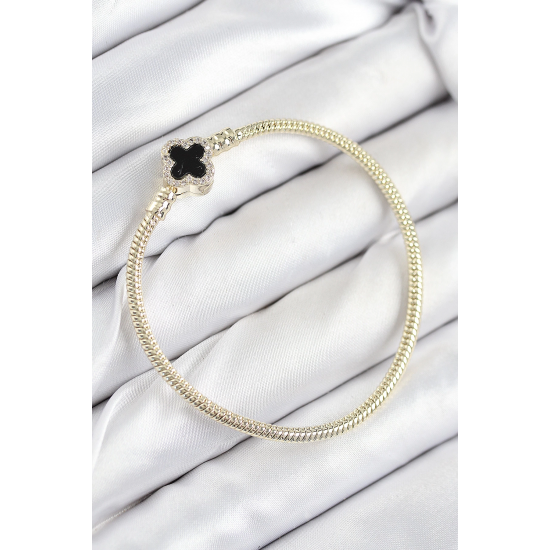 Mey İthalat® Pirinç Charm Zirkon Taşlı Yonca Model Gold Renk Kadın Bileklik