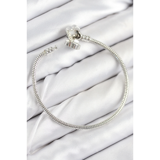 Mey İthalat® Pirinç Charm Zirkon Taşlı Yonca Model Gümüş Renk Kadın Bileklik