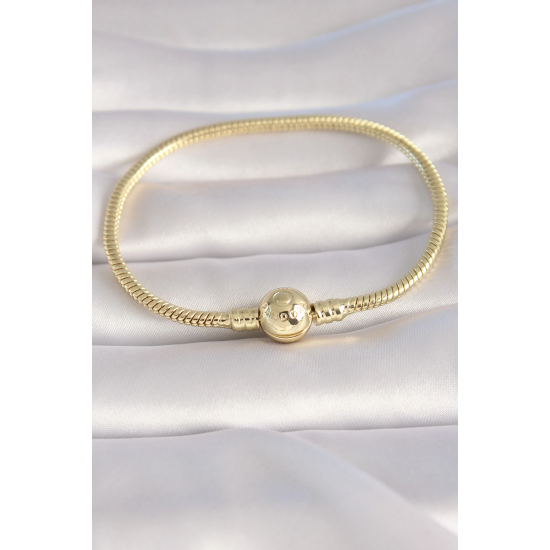 Mey İthalat® Pirinç Gold Renk İşleme Detay Charm Model Kadın Bileklik