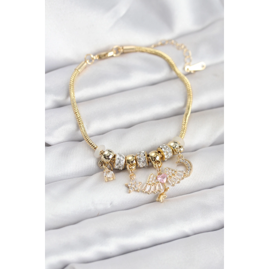 Mey İthalat® Pirinç Gold Renk Kanatlı Charmlı Kadın Bileklik
