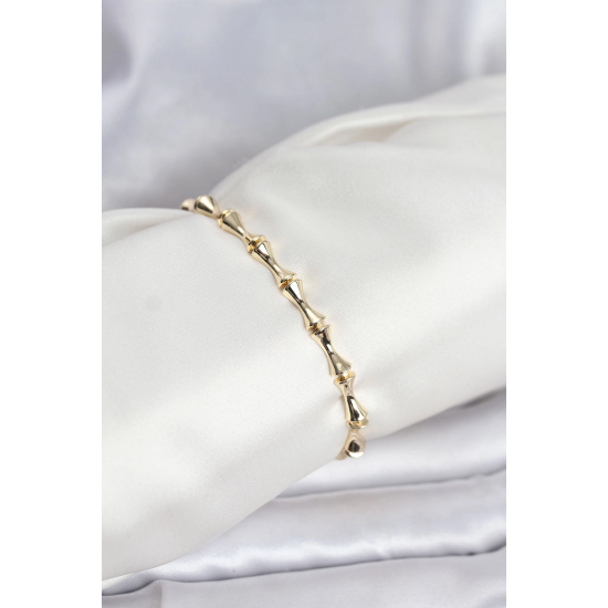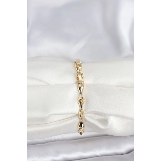 Mey İthalat® Pirinç Gold Renk VIP Seri Kemik Model Zirkon Taşlı Kadın Bileklik