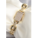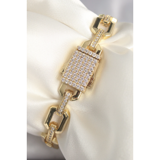Mey İthalat® Pirinç Gold Renk Zirkon Taş Detaylı Kare Zincir Model Xuping VIP Exculusive Seri Kadın Bileklik