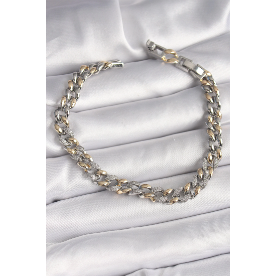 Mey İthalat® Pirinç Mix Renk Zirkon Taşlı Zincir Model VIP Seri Kadın Bileklik