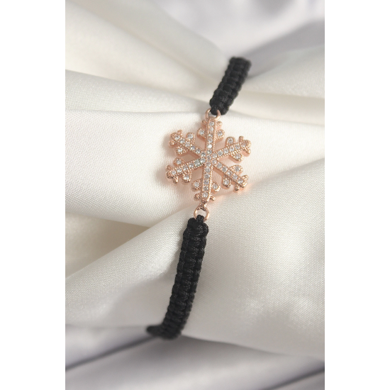 Mey İthalat® Pirinç Rose Renk Zirkon Taşlı Kar Tanesi Figür Makrome Asansörlü Model Kadın Bileklik