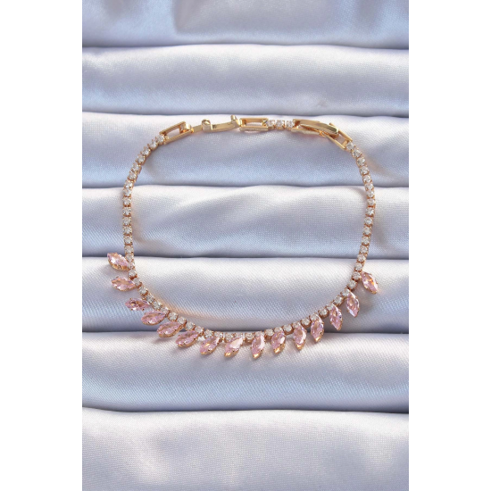 Mey İthalat® Pirinç Vip Seri Altın Renk Pembe Zirkon Taşlı Bileklik