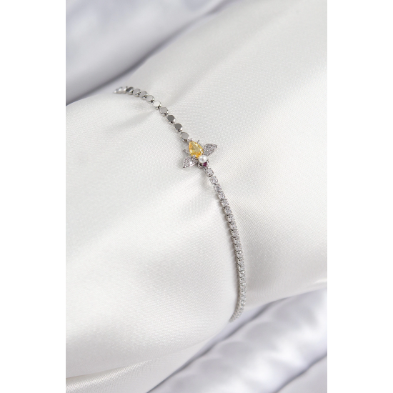 Mey İthalat® Pirinç Zirkon Taşlı Arı Model Ezme Zincir Gümüş Renk Kadın Bileklik