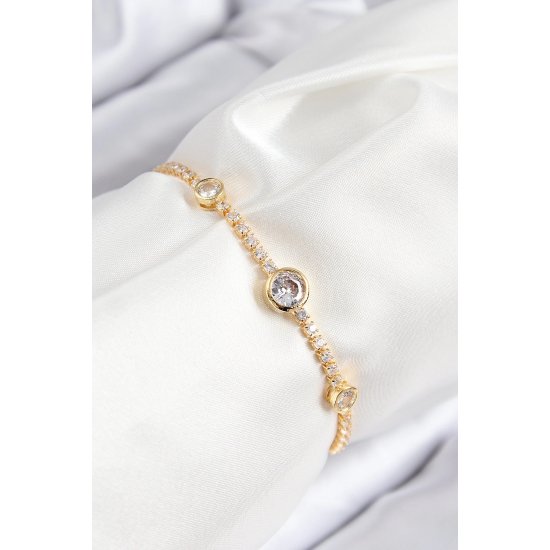 Mey İthalat® Pirinç Zirkon Taşlı Daire Model Gold Renk Asansörlü Kadın Bileklik