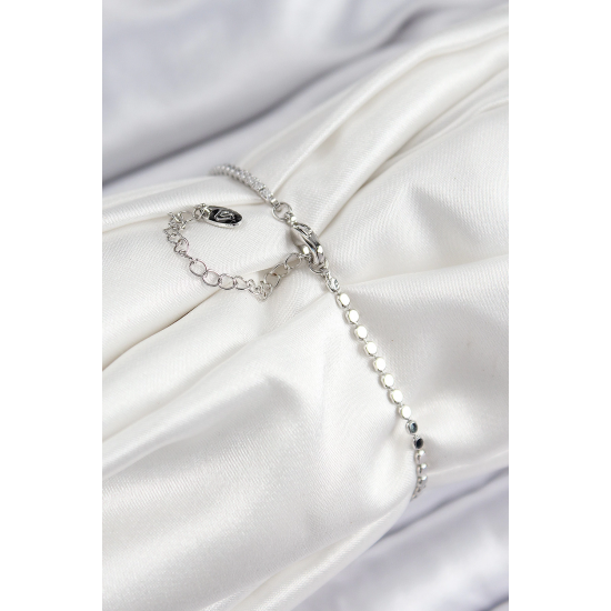 Mey İthalat® Pirinç Zirkon Taşlı Damla Model Ezme Zincir Gümüş Renk Kadın Bileklik