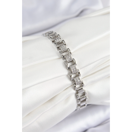 Mey İthalat® Pirinç Zirkon Taşlı Parçalı Model Gümüş Renk Kadın Bileklik
