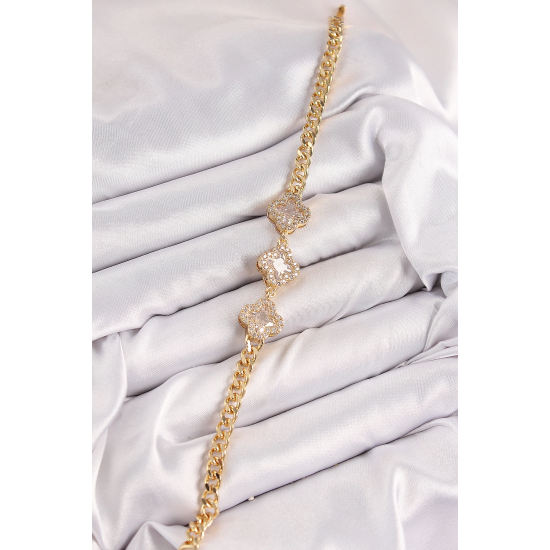 Mey İthalat® Pirinç Zirkon Taşlı Yonca Model Gold Renk Kadın Bileklik