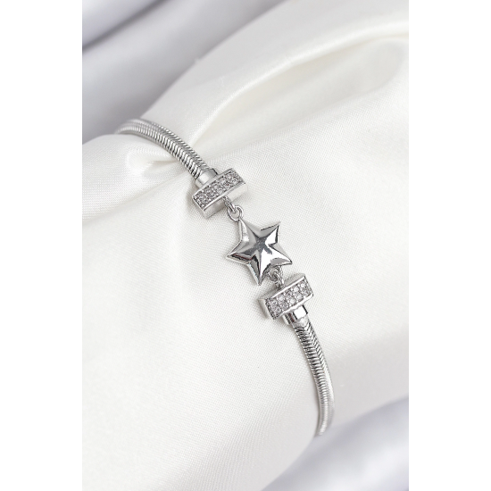 Mey İthalat® Pirinç Zirkon Taşlı Yonca Model Gümüş Renk Kadın Bileklik
