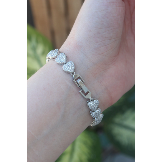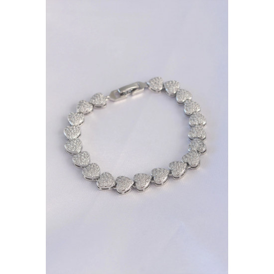 Mey İthalat® Vip Seri Pirinç Zirkon Taşlı Gümüş Renk Kalp Model Bileklik