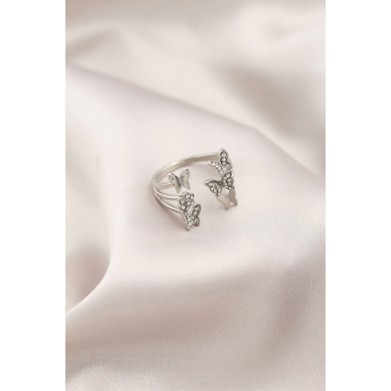 Mey İthalat® Gümüş Renk Metal Kelebek Model Kadın Yüzük