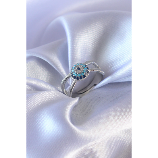 Mey İthalat® Gümüş Renk Nazar Boncuk Model Kadın Yüzük