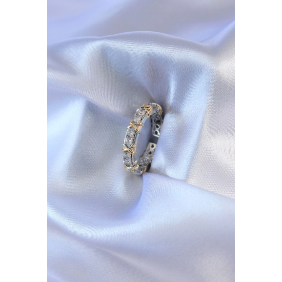 Mey İthalat® Gümüş Renk Zirkon Taşlı Gold Renk Detay Xoxo Kadın Yüzük