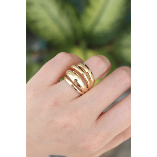 Mey İthalat® Pirinç Gold Renk Ayarlanabilir Tırtıklı Bombe Yüzük