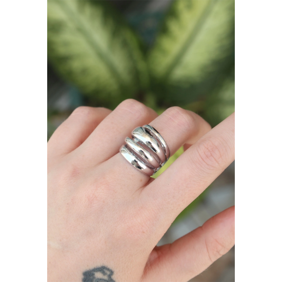 Mey İthalat® Pirinç Gümüş Renk Ayarlanabilir Tırtıklı Bombe Yüzük