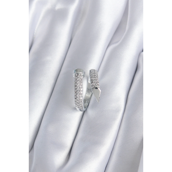 Mey İthalat® Pirinç Gümüş Renk Zirkon Taşlı Çivi Model Kadın Yüzük