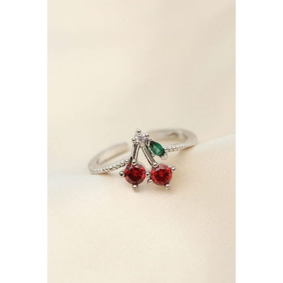 Mey İthalat® Ayarlamalı Gümüş Renk Kristal Taşlı Kiraz Yüzük