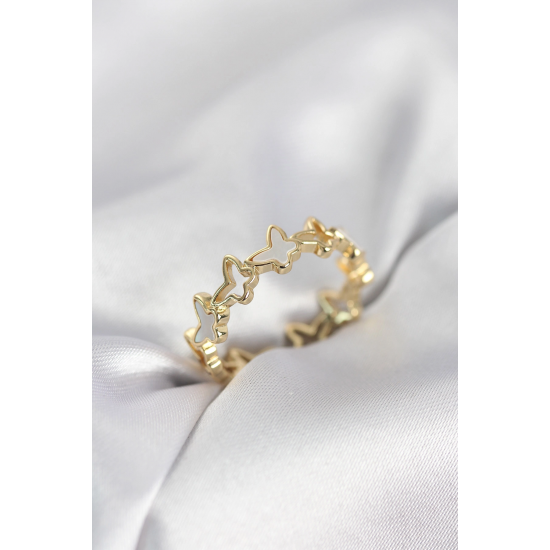 Mey İthalat® Gold Renk Kelebek Model Pirinç Kadın Yüzük