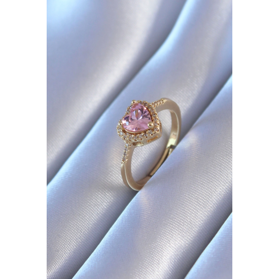 Mey İthalat® Gold Renk Zirkon Taşlı Kalp Model Pirinç Charm Kadın Yüzük