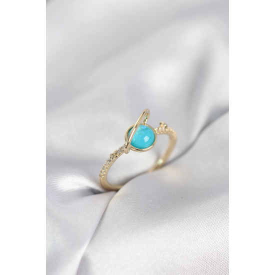 Mey İthalat® Gold Renk Zirkon Taşlı Satürn Model Kadın Yüzük