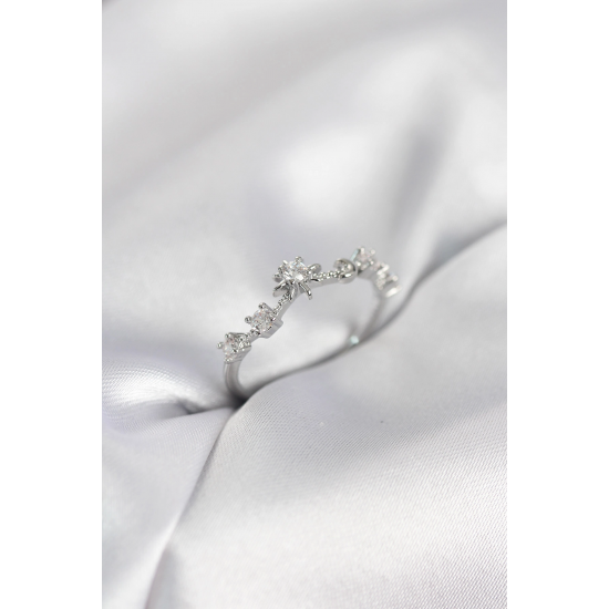 Mey İthalat® Gümüş Renk Gece Temalı Zirkon Taşlı Kadın Yüzük