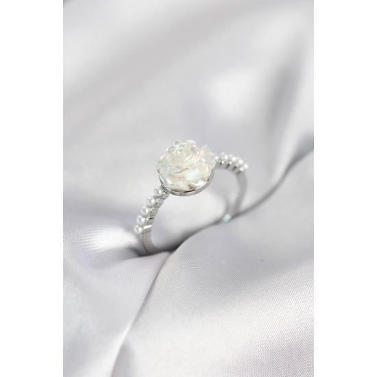 Mey İthalat® Gümüş Renk Gül Model İncili Kadın Yüzük