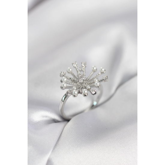 Mey İthalat® Gümüş Renk Karahindiba Model Zirkon Taşlı Kadın Yüzük