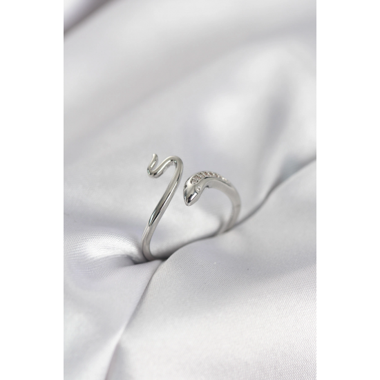 Mey İthalat® Gümüş Renk Yılan Model Zirkon Taşlı Kadın Yüzük